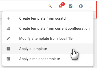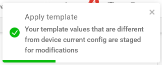 Selecting Apply a template adds the settings contained in the template to the target device’s current configuration when the template is applied. No settings on the target device will be modified unless modified by the settings in the template. In effect, the Apply a template process merges the settings in the template with the device’s other settings.