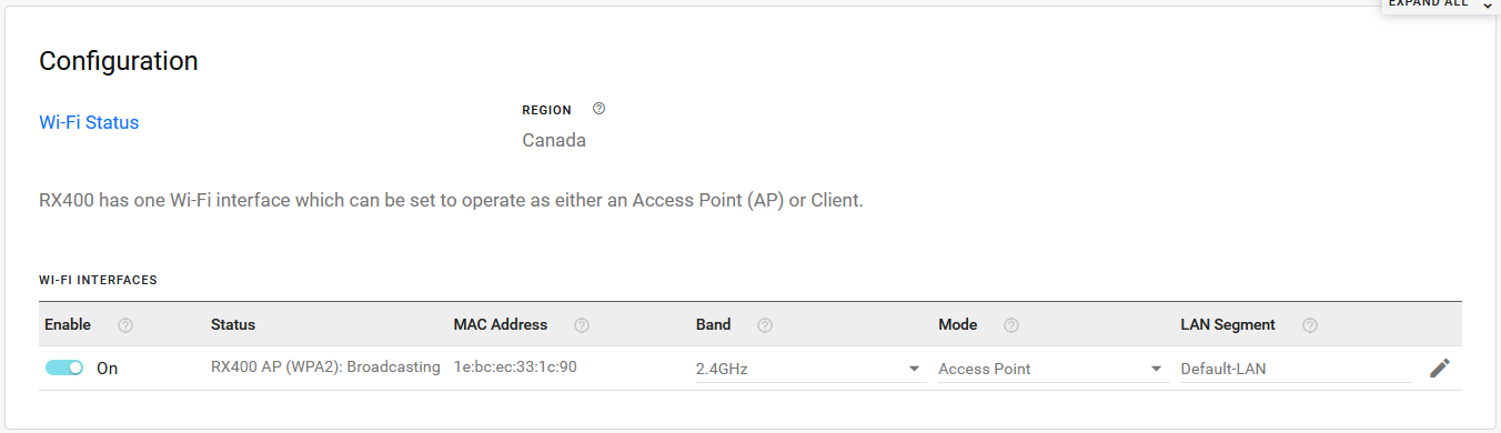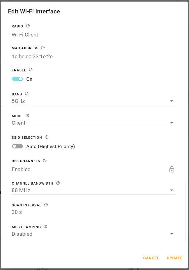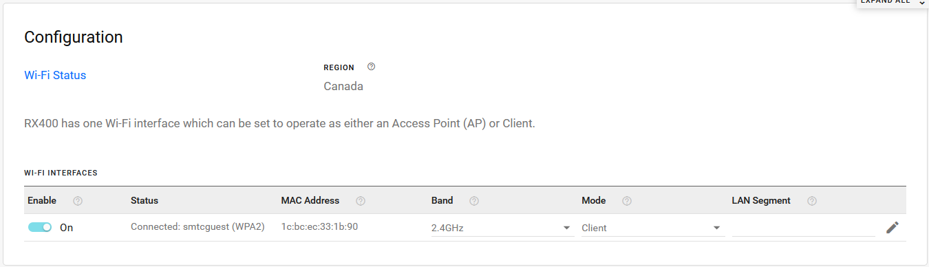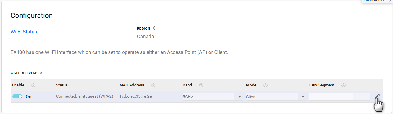 You can complete or edit the Client mode configuration in the WI-FI INTERFACES table.