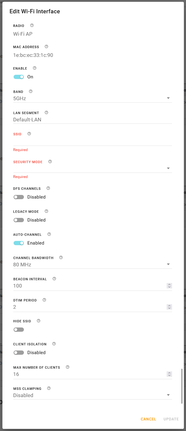 In Edit Wi-Fi Interface, configure the fields in any order.