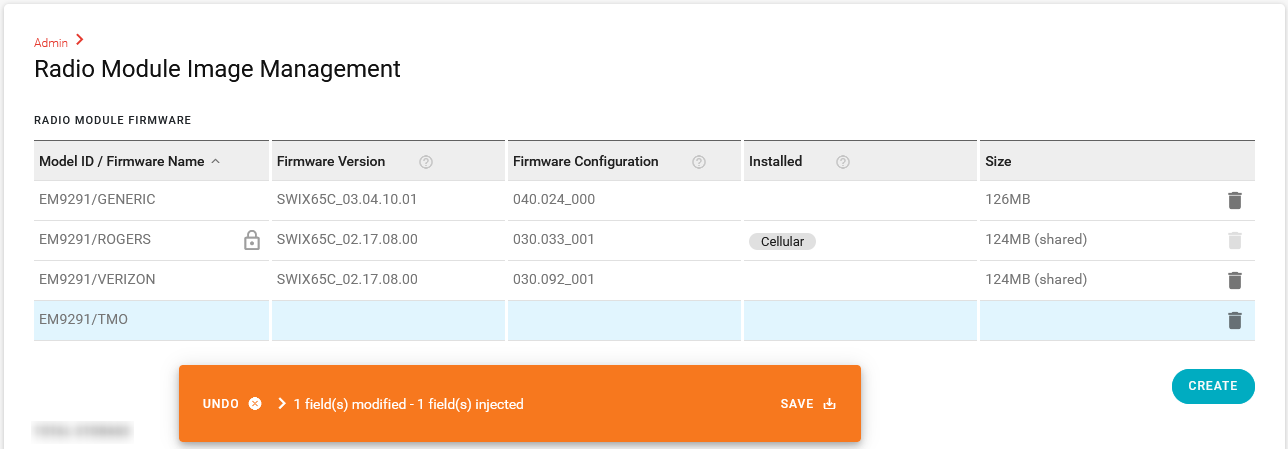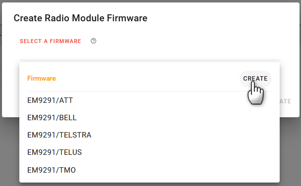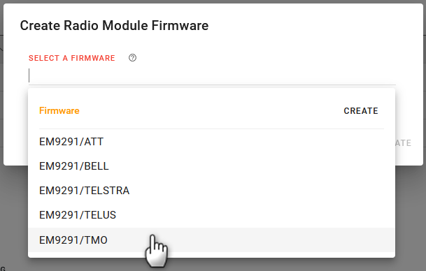 When RADIO FIRMWARE SWITCHING setting is set to Manual, you can manually switch the radio module firmware to a specific network operator using this process. You can check the RADIO FIRMWARE SWITCHING setting in the Hardware Interfaces > Cellular Interfaces > Configuration section.