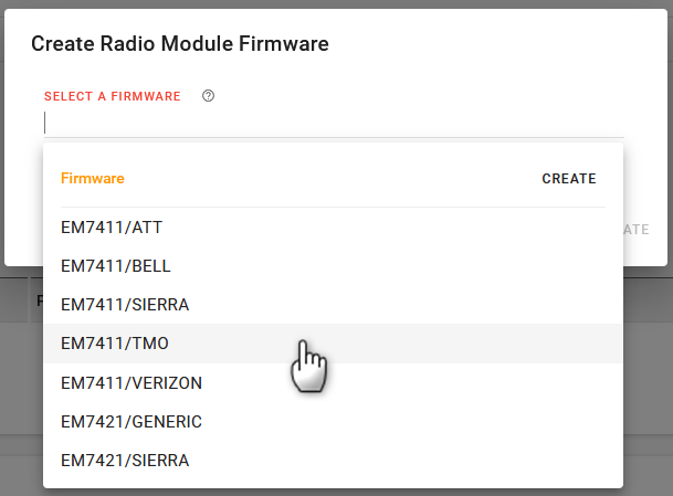 When RADIO FIRMWARE SWITCHING setting is set to Manual, you can manually switch the radio module firmware to a specific network operator using this process. You can check the RADIO FIRMWARE SWITCHING setting in the Hardware Interfaces > Cellular Interfaces > Configuration section.