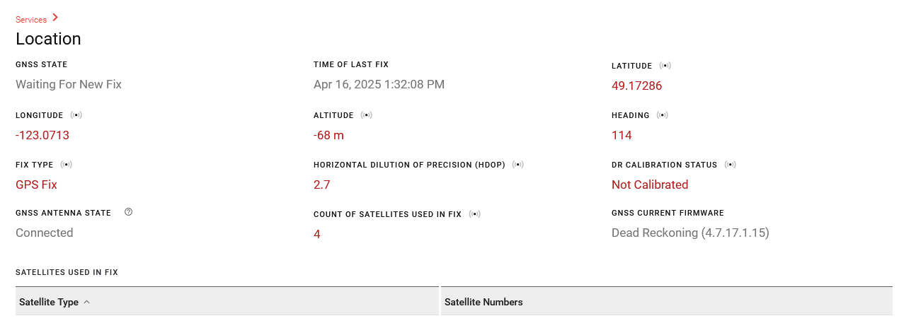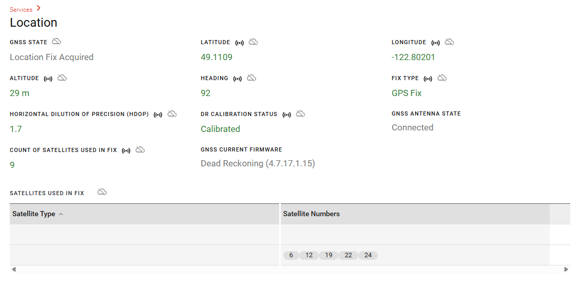 To view the current GNSS status, go to Status/Monitoring > Services > Location.