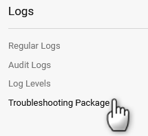 When troubleshooting logs are requested by Semtech Technical Support, go to System > Logs > Troubleshooting Package.