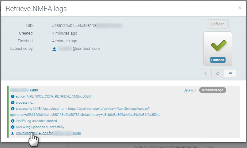 AirVantage creates a Retrieve NMEA logs operation.
