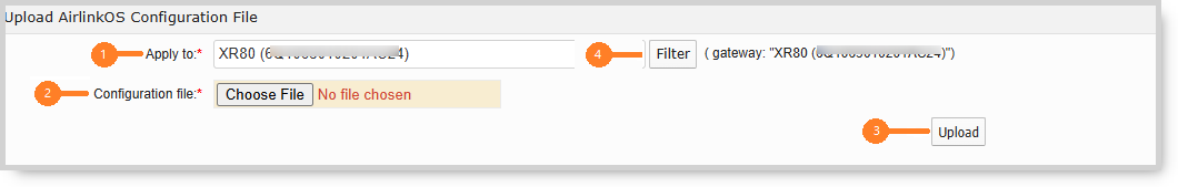 The Upload for AirLinkOS screen is only used to configure AOS gateway(s).